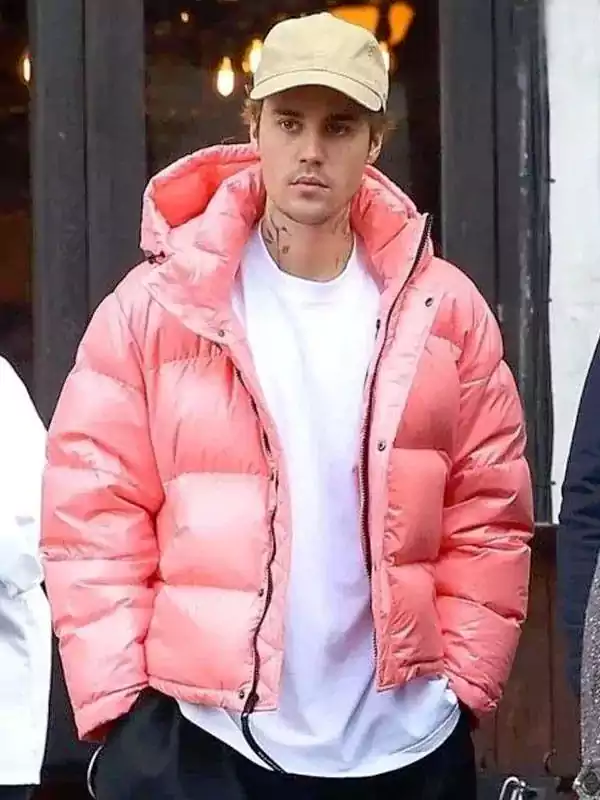 Justin Bieber American Singer Pink Hooded Puffer Jacket