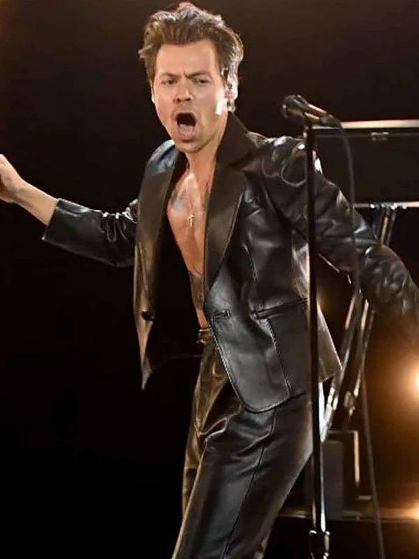 Harry Styles At Grammy Awards 2021 Black Leather Blazer