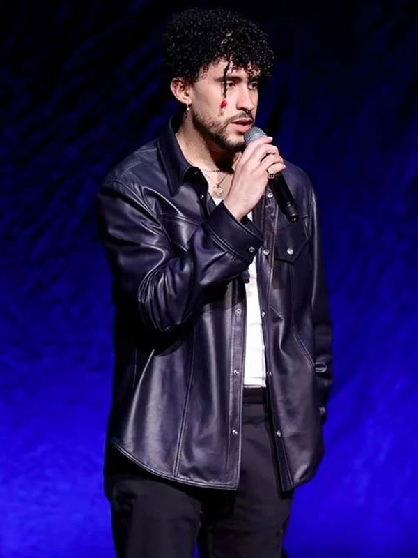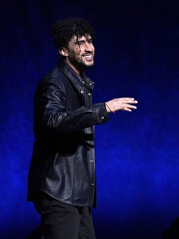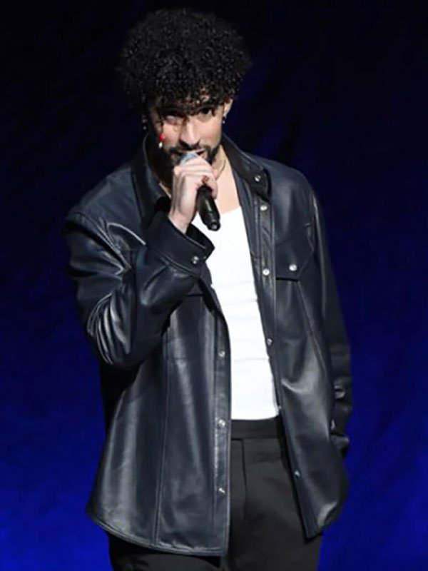 Bad Bunny Rapper and Singer Black Leather Shirt