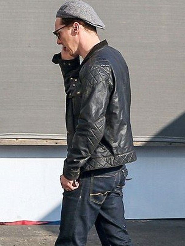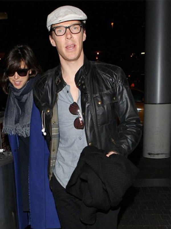 Benedict Cumberbatch Arrives At JFK Airport Black Leather Jacket