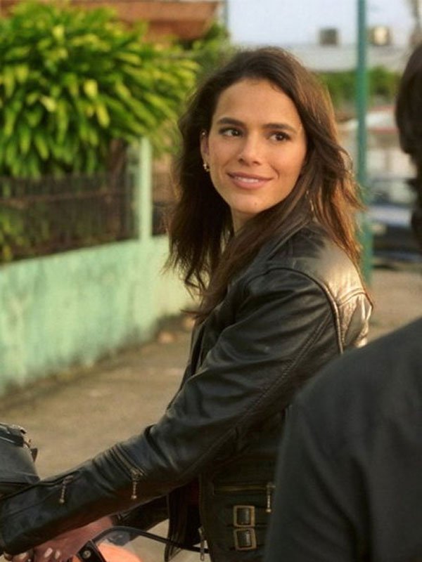 Bruna Marquezine Blue Beetle Movie Jenny Kord Black Leather Jacket