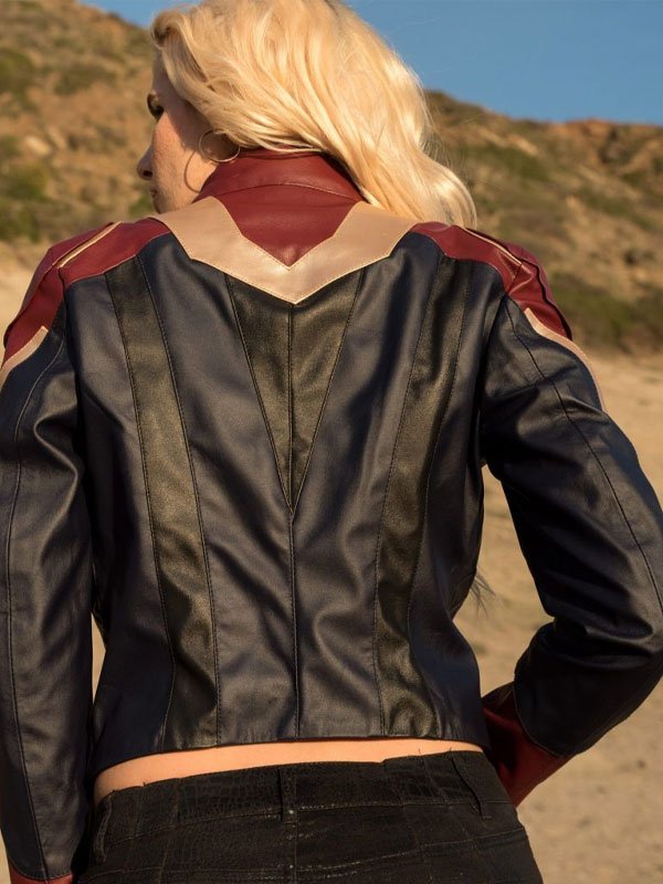 Brie Larson Captain Marvel 2019 Carol Danvers Red and Blue Leather Jacket