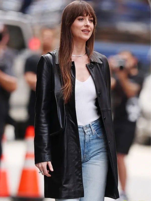 Dakota Johnson Materialists 2025 Lucy Black Leather Long Coat