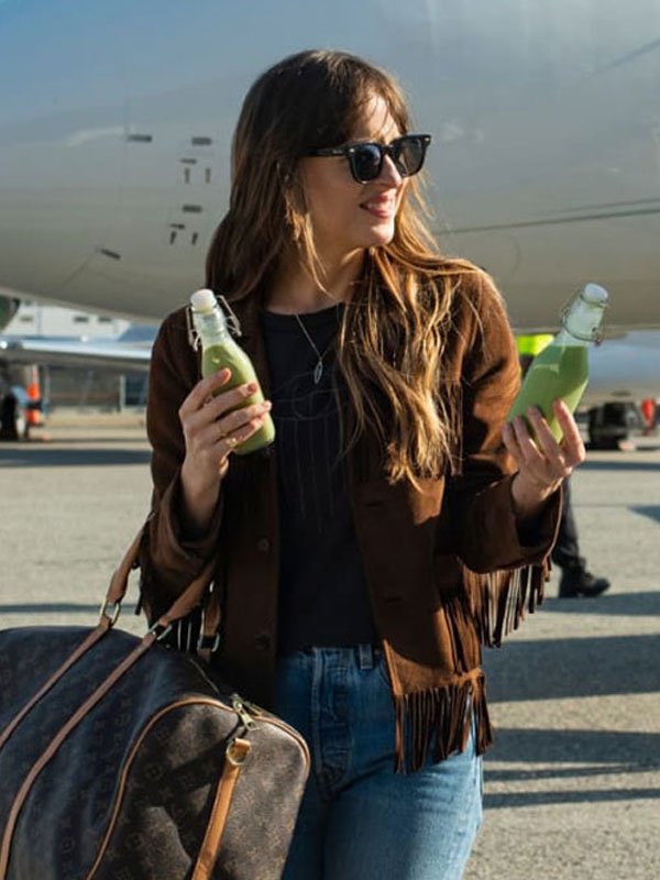 Dakota Johnson The High Note Movie Maggie Sherwood Brown Suede Leather Jacket