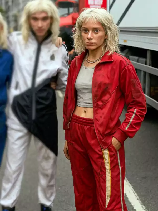28 Years Later Erin Kellyman Red Tracksuit28 Years Later Erin Kellyman Red Tracksuit