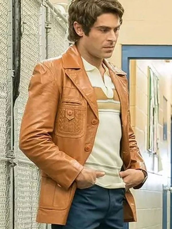 Zac Efron Extremely Wicked Shockingly Evil And Vile Ted Bundy Brown Leather Blazer