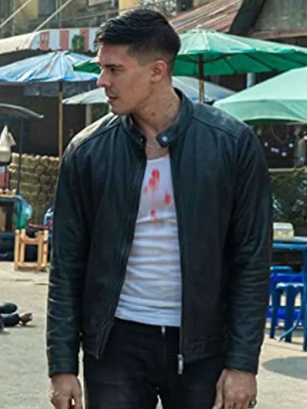 Lewis Tan Fistful of Vengeance Movie Lu Xin Lee Black Leather Jacket