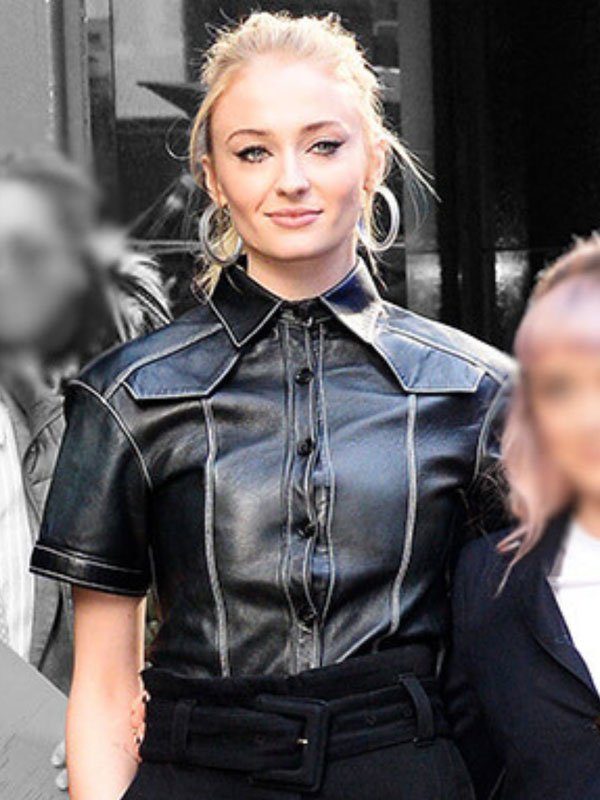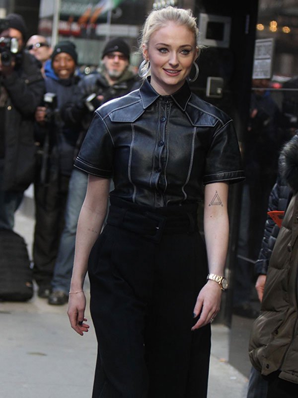 Sophie Turner Promoting Game of Thrones S08 Black Leather Shirt