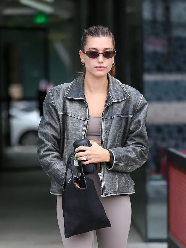 Hailey Baldwin Bieber American Model Gray Leather Jacket