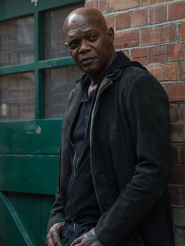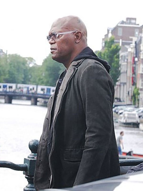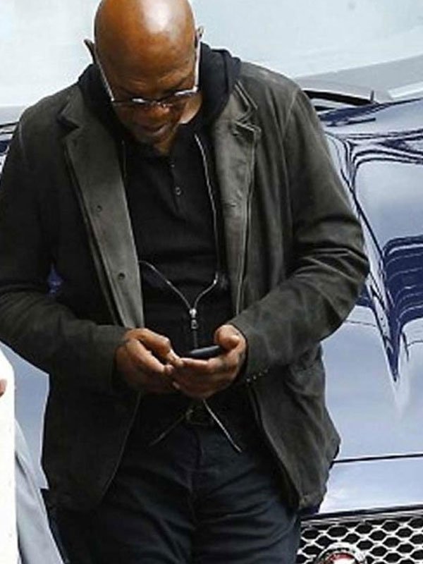 Samuel Jackson Hitman’s Wife’s Bodyguard Darius Kincaid Black Leather Blazer
