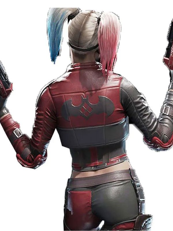 Harley Quinn Video Game Injustice 2 Red and Gray Leather Jacket
