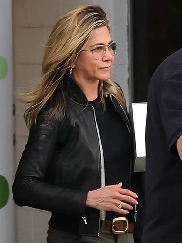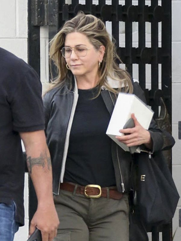 Jennifer Aniston Trip Beverly Hills California Black Leather Jacket