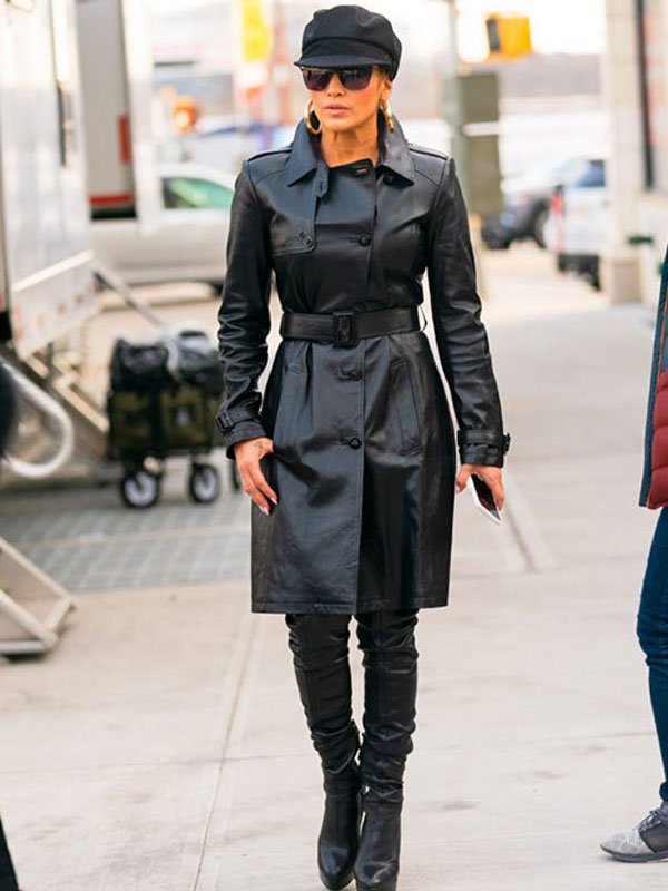 Jennifer Lopez Hustlers 2019 Black Leather Trench Coat