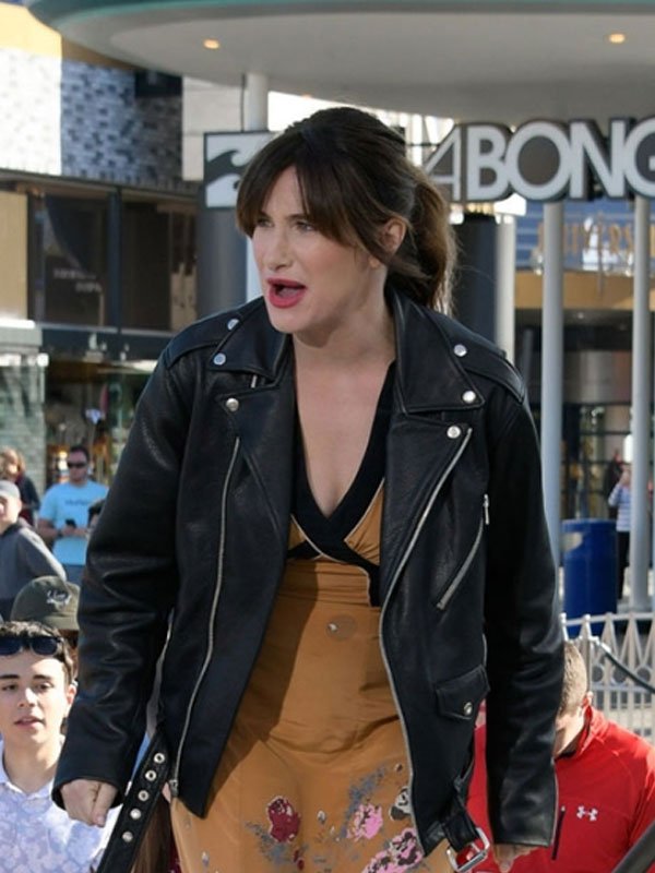 Kathryn Hahn Visits at Universal Studios Black Leather Jacket