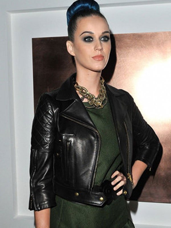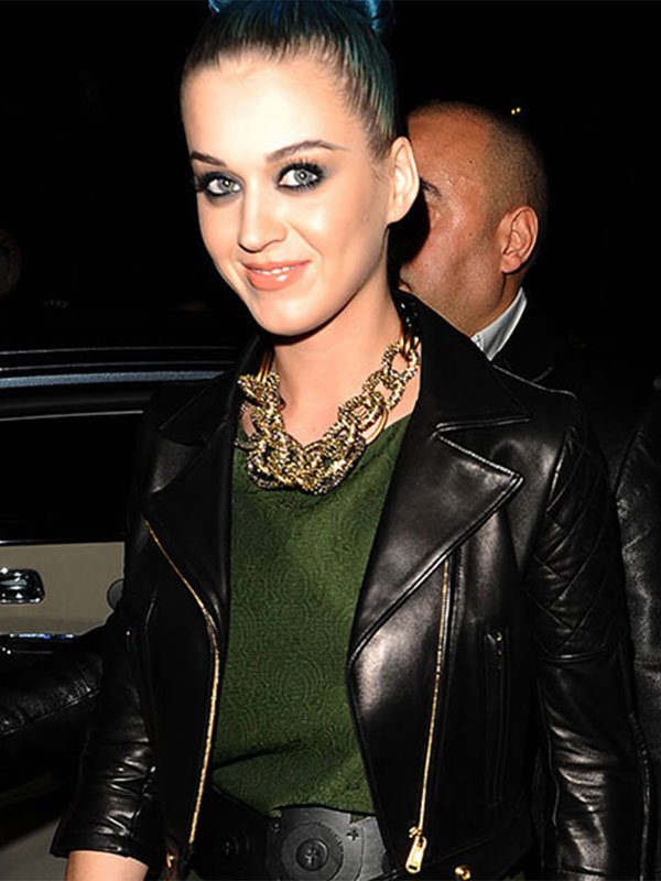 Katy Perry Attending Fashion Show 2012 Black Leather Jacket