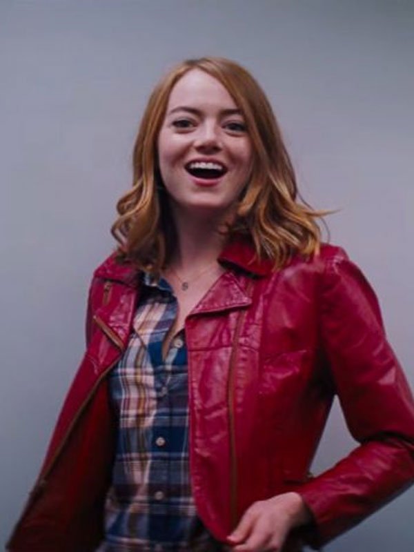 Emma Stone La La Land Movie Mia Red Leather Jacket