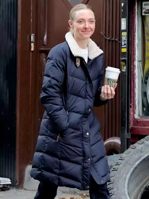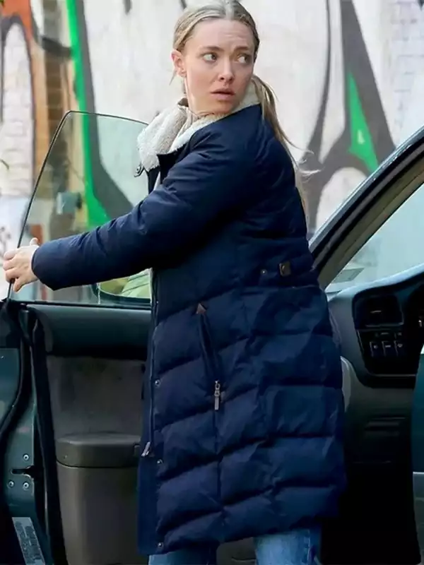 Long Bright River Amanda Seyfried Blue Puffer Coat