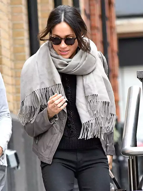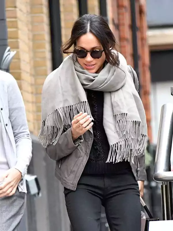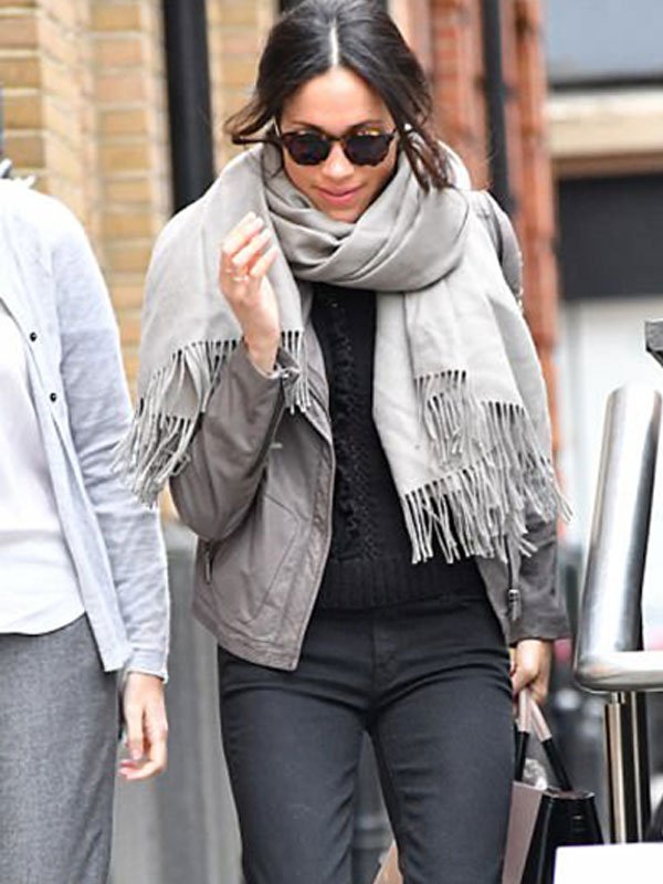 Meghan Markle Worn Street Style Gray Leather Jacket