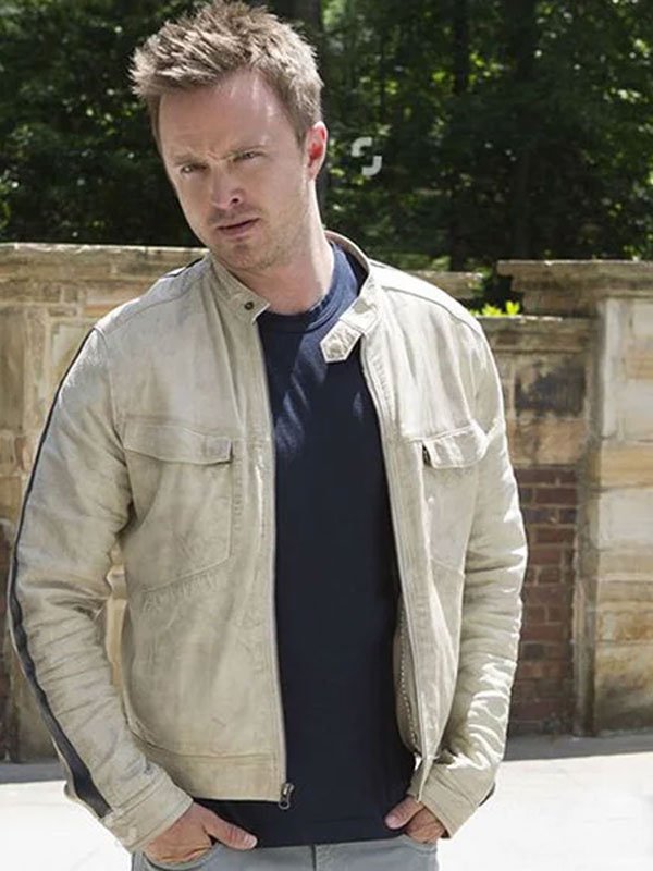 Aaron Paul Need For Speed Movie Tobey Marshall Off White Leather Jacket