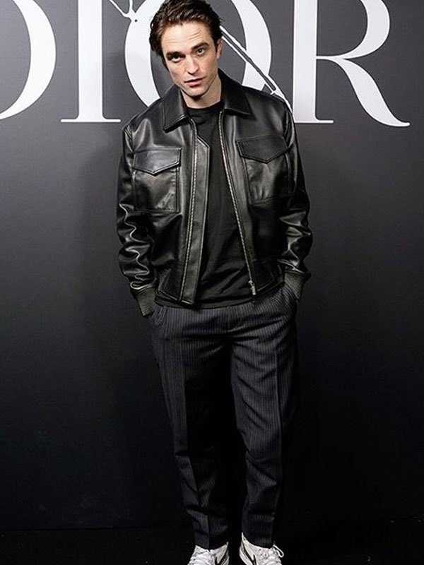 Robert Pattinson Paris FashionShow in 2020 Black Leather Jacket