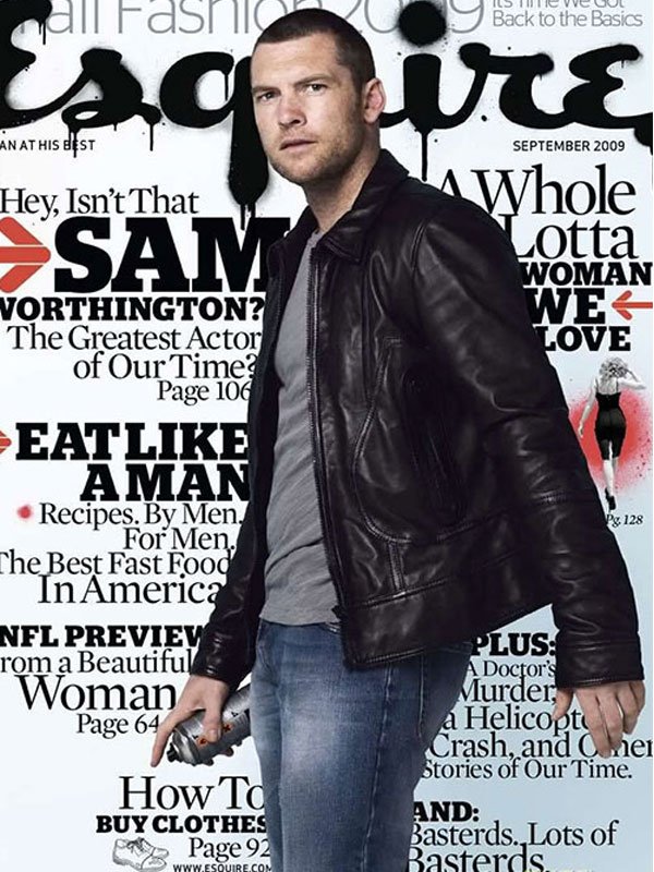 Sam Worthington Esquire Photo Shoot Black Leather Jacket