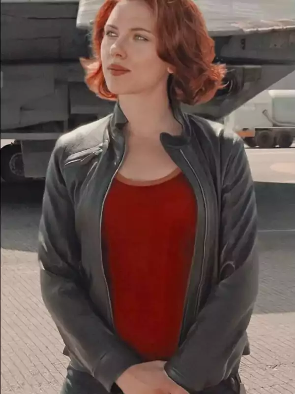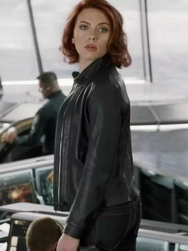 Black Widow Scarlett Johansson Black Leather Jacket
