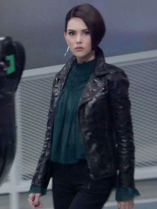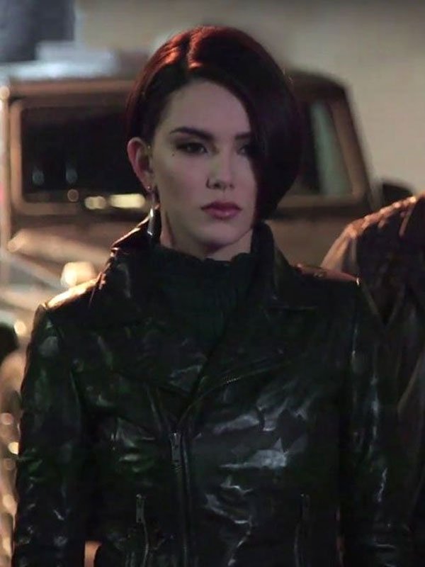 Hannah Quinlivan Skyscraper Movie Xia Black Leather Jacket