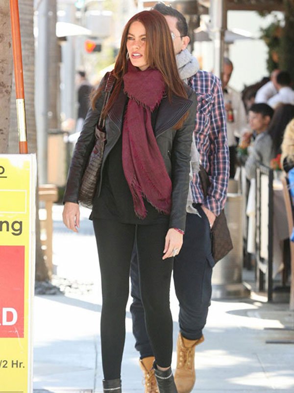 Sofia Vergara in Brevely Hills Black Leather Jacket