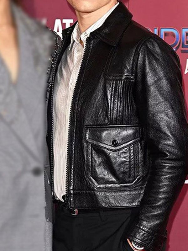 Tom Holland Spiderman Movie 2021 Peter Parker Black Leather Jacket