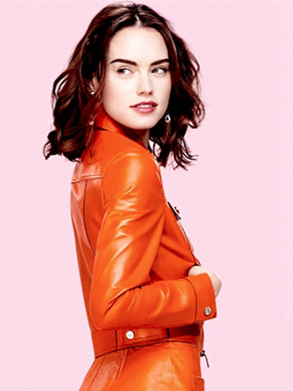 Daisy Ridley Star Wars Sequel Trilogy Rey Bold Orange Leather Jacket