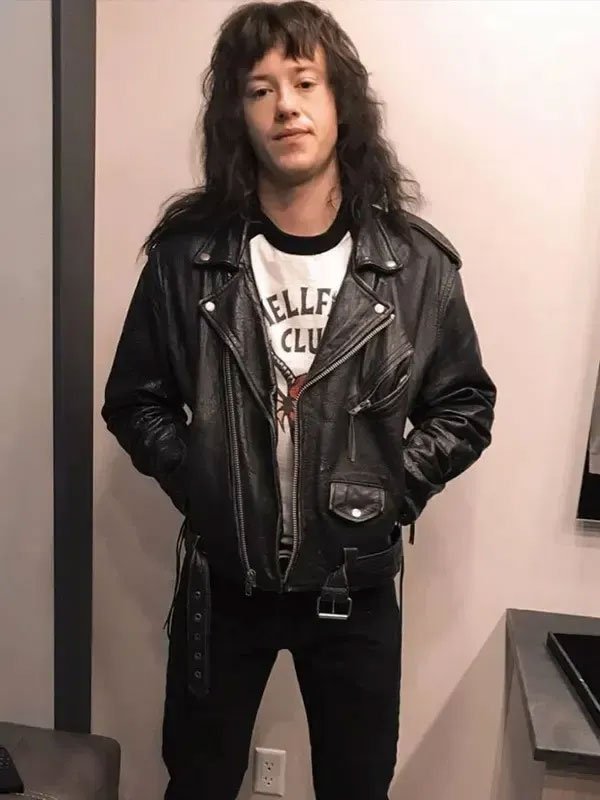 Joseph Quinn TV Series Stranger Things S04 Eddie Munson Black Leather Jacket