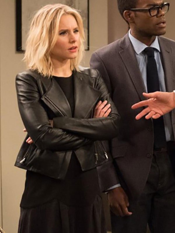 Kristen Bell TV Series The Good Place S05 Eleanor Shellstrop Black Leather Jacket