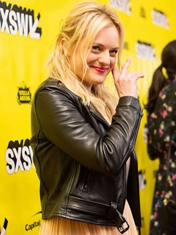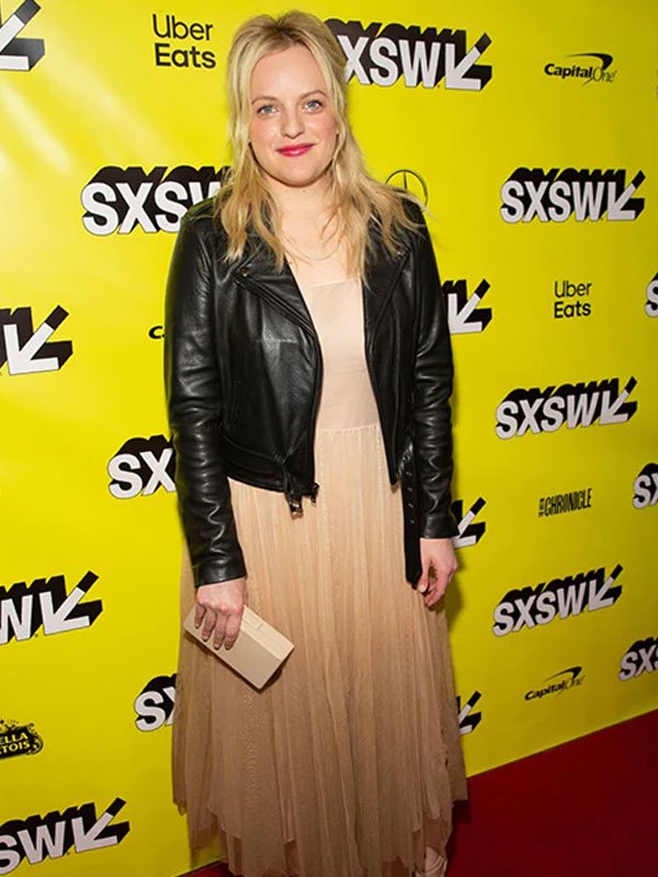 Elisabeth Moss Us Movie Kitty Tyler Black Leather Jacket