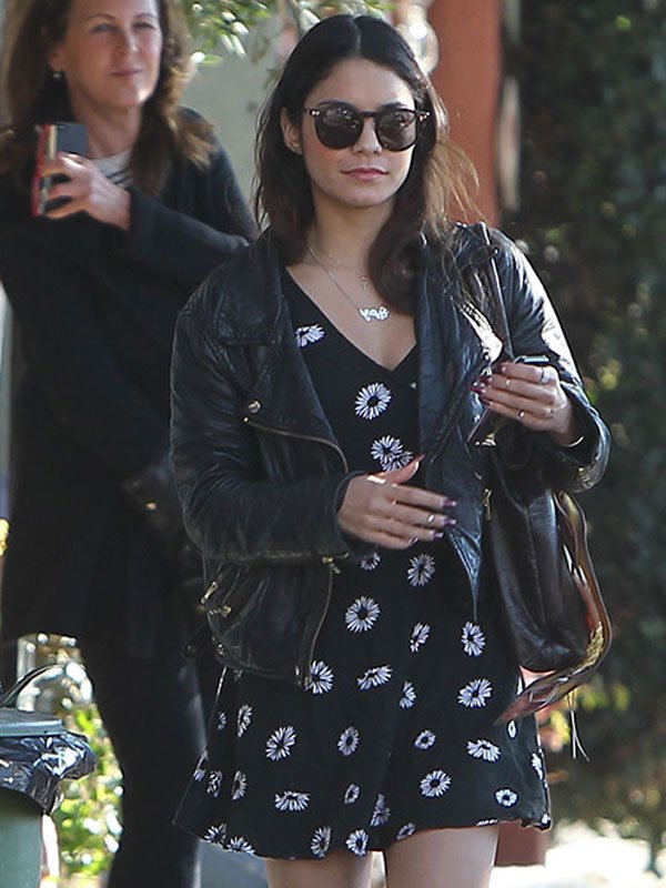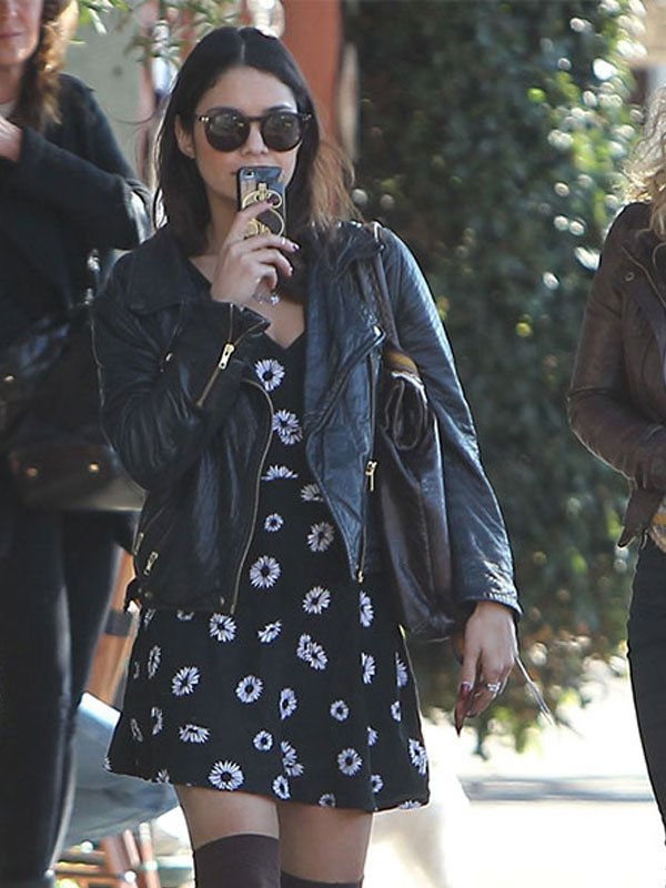 Vanessa Hudgens Street Style Fashion Black Leather Jacket