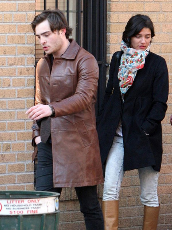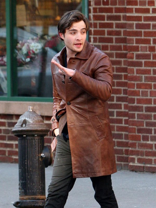 Ed Westwick TV Series White Gold Vincent Swan Brown Leather Trench Coat