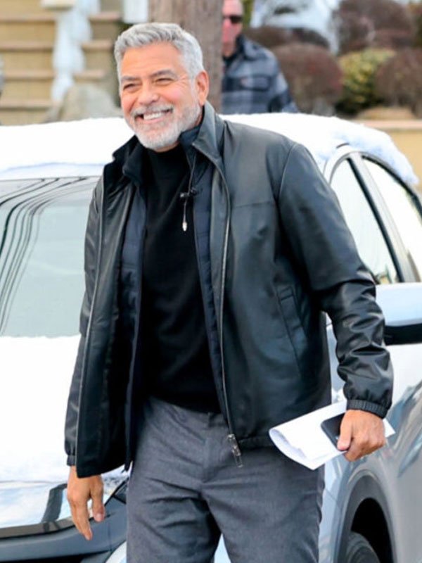 George Clooney Wolves Movie 2024 Black Leather Jacket